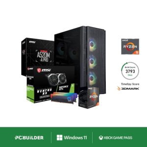 Stand your ground with the PCBuilder AMD Ryzen 5 5600G DEFENDER Windows 11 Gaming PC. This pre-built gaming PC is powered by a 5th generation AMD Ryzen 5 5600G CPU with built-in Radeon graphics. It also comes with an MSI A520 chipset motherboard, 16GB of high-speed DDR4 memory, an M.2 NVME SSD and a 550W power supply.